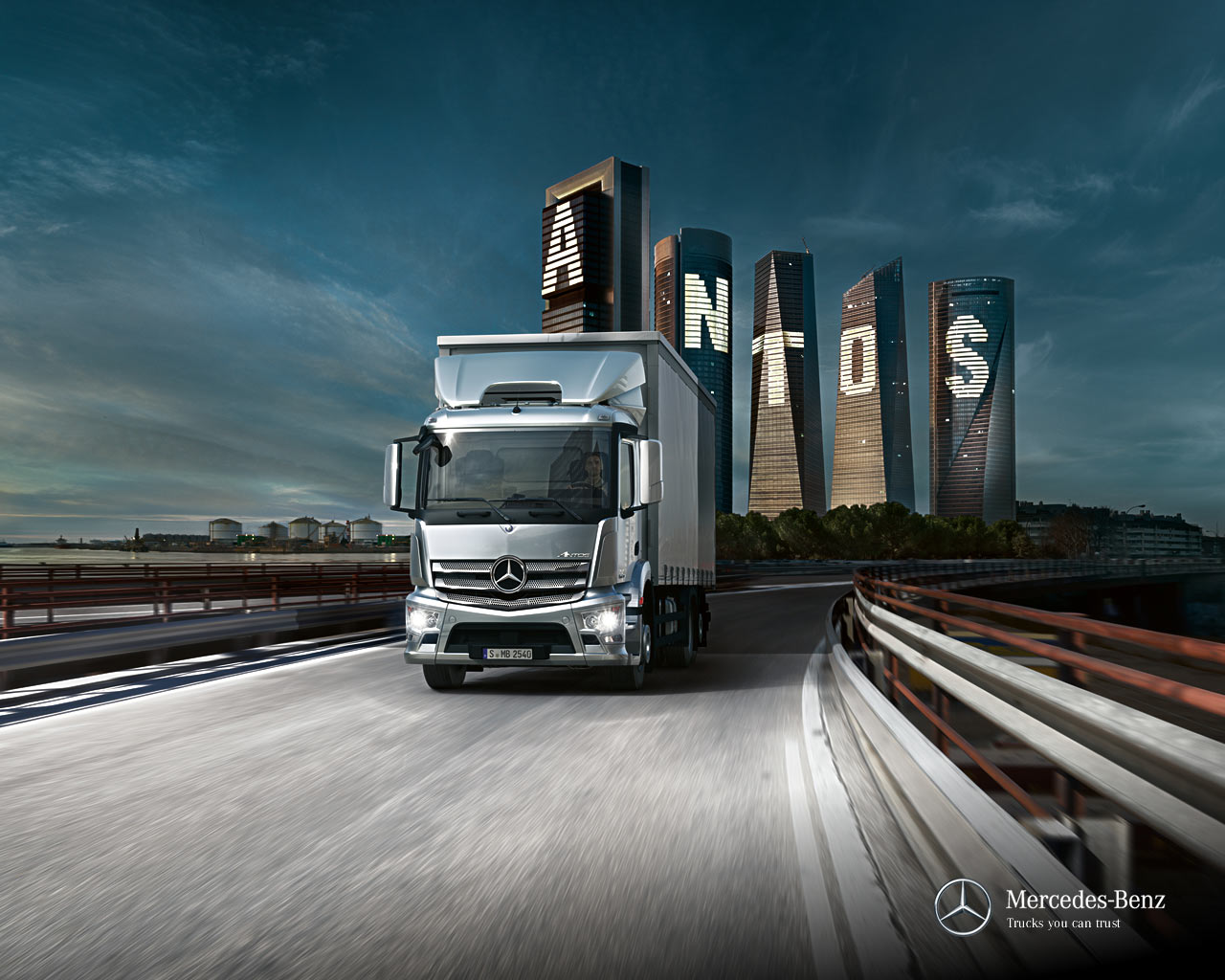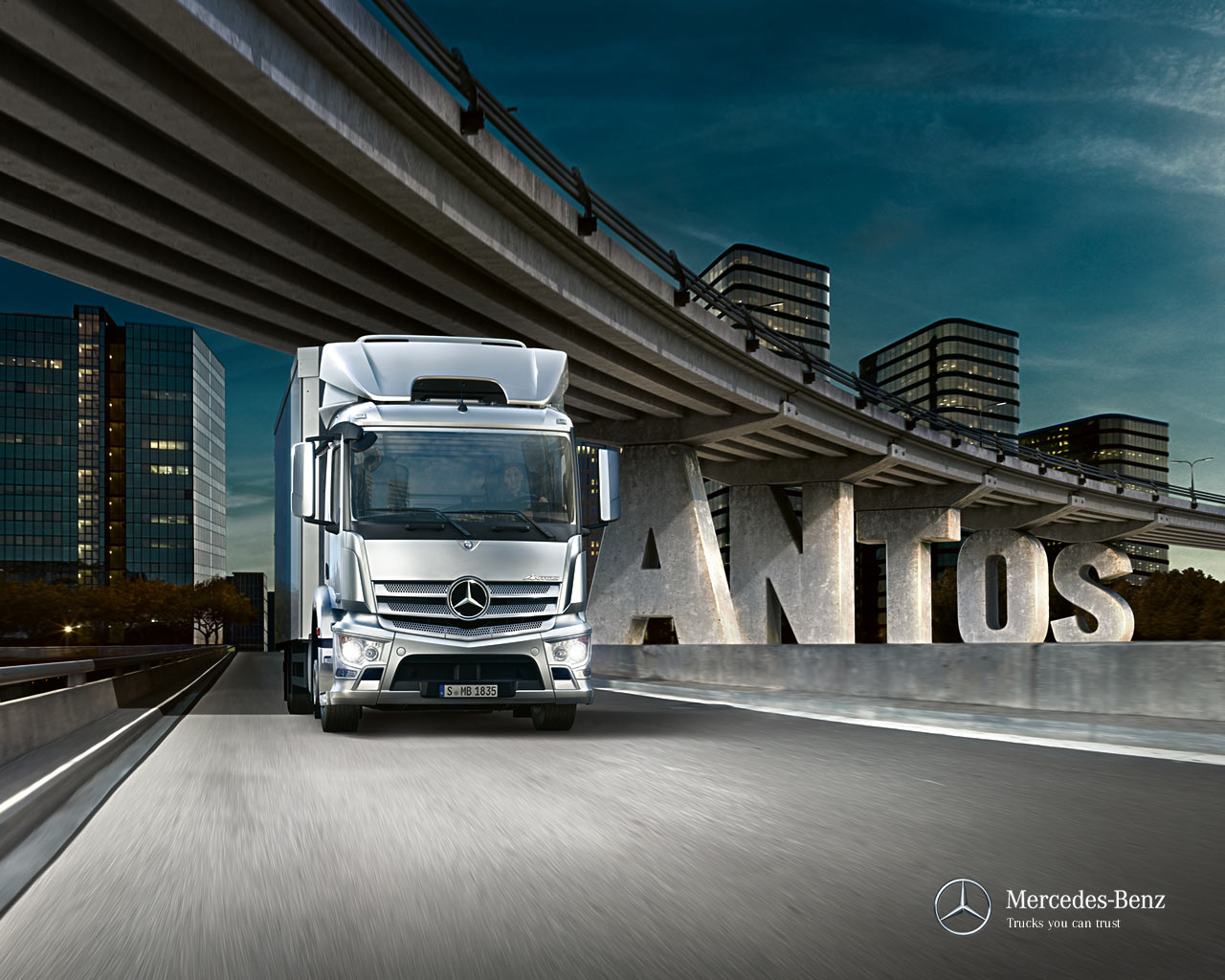 Mercedes-Benz Antos makes its public premiere at the IAA Commercial Vehicles show in Hannover in September and will eventually take over from the current Axor range between 18 and 26 tonnes as a rigid and up to 40-tonnes as a tractor. All Antos models come with a 2.30m wide ClassicSpace can as standard, offered in either short (S) or medium (M) lengths. The medium-length M variant is also available as the super-flat CompactSpace cab, for trucks with cooling units fitted to the body. Meanwhile, Antos’s well-appointed cockpit provides the driver with an ergonomically-sound workplace with all instruments clearly arranged and easy to use. Moreover, the multifunction steering wheel and generous seat adjustment ensures you’ll get a great ‘fit’ in Antos, whether you’re long, short, skinny or ‘chunky’.